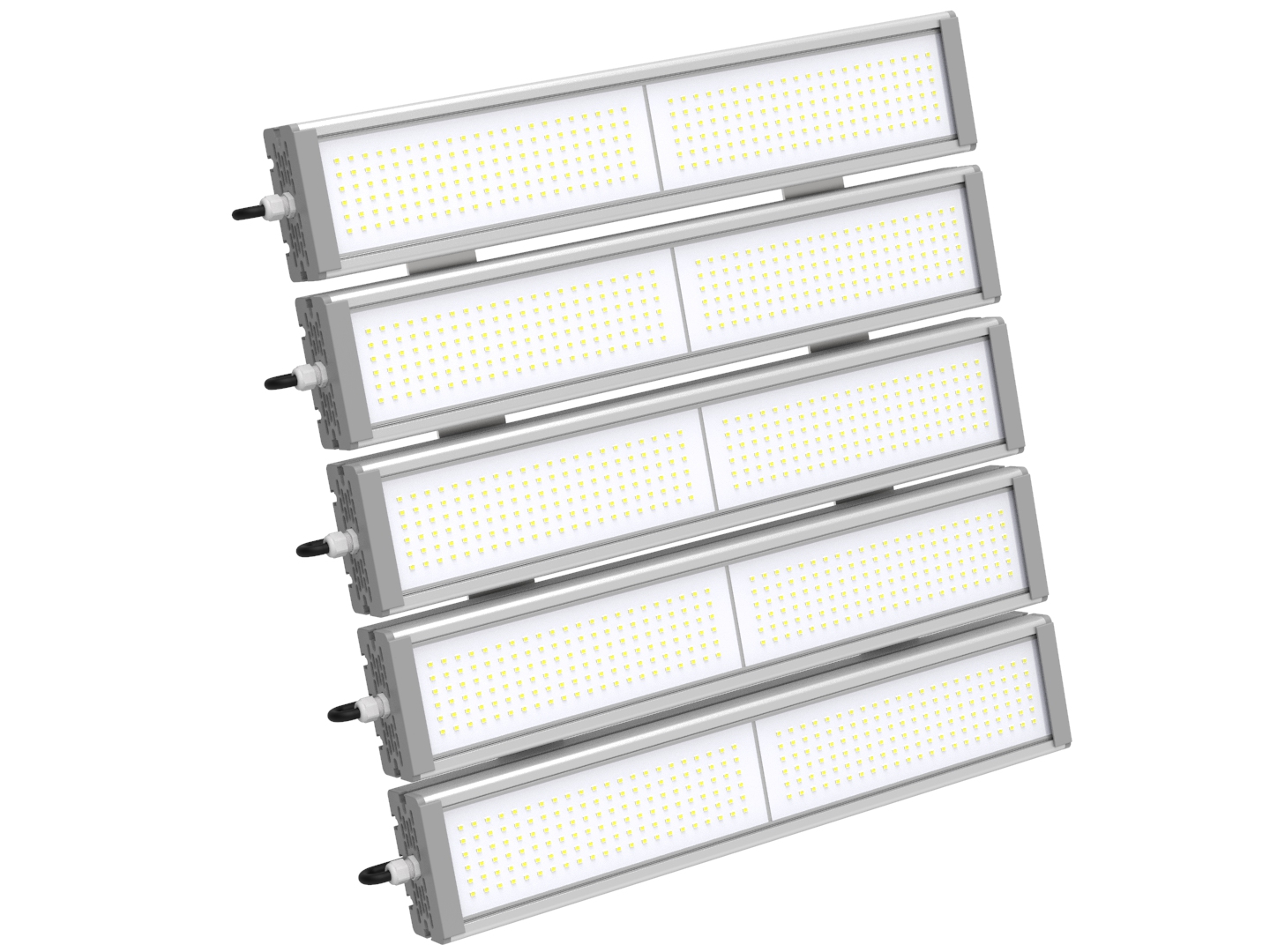 Объединенные светильники серии "Модуль". "Хвосты" питания не объединены в один. Сколько модулей, столько и "хвостов". Модули могут работать независимо друг от друга. Это позволяет включать их различными фазами, а также производить замену Модулей, без демонтажа светильника целиком.